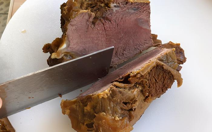 把牛肉切成自己想要的厚度,裝盤即可開吃。