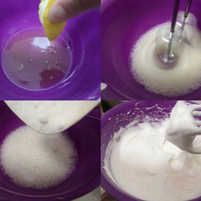 5、蛋清分3次加入細砂糖打發拉出彎鉤