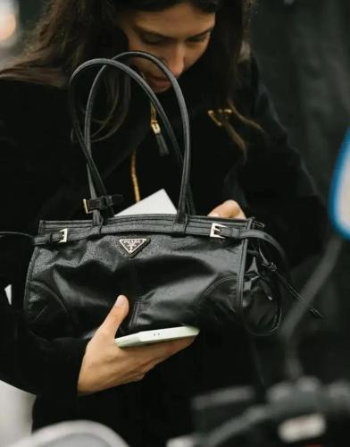 Prada這只是包界大紅人了。美就美在油蠟皮,油亮油亮的~整體透著濃濃的復古感,自帶vintage包包的韻味。時尚博主Camille Charriere、Xenia Adonts▼