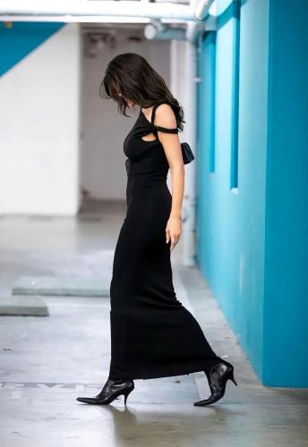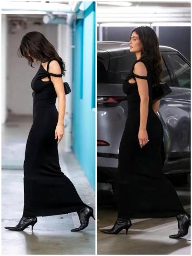 老實說,我第一眼看的時候沒有特別感冒,直到刷到開頭金小妹那張圖。我發現這隻包挺好凹造型的誒!比如她這一身,從裙子到鞋都比較正式,如果再拿一隻手拿包就會比較隆重了。而長條包放大了小黑裙的優雅,又有點隨性的感覺。▼