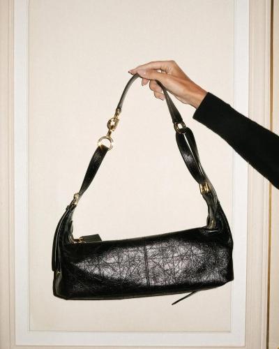 他家還有一款le click,是2025春夏秀場新出爐的。別看它圖拍得「硬邦邦」,其實是柔軟小牛皮材質。包口弧形是貼合身體曲線的,靈感來源於紐約古根海姆博物館裡的圓形大廳。一共有大、中、三個尺寸,小號可以當腰包,大號還可以斜挎。▼