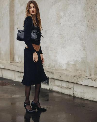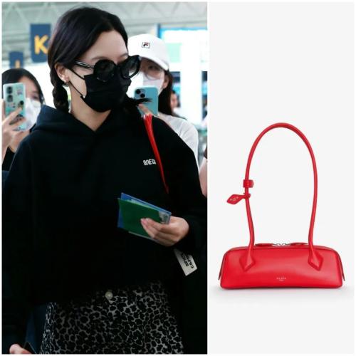 她背的就是長條包裡最火的Alaia Le Teckel,品牌出了各種大小、長度材質和顏色(可能很多朋友對他家爆款愛心包更熟悉)。▼